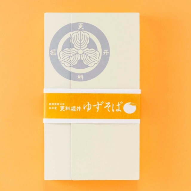 最上の玄そばの実の中心部からとれる真白いそば粉(更科粉)を使用し、更科堀井に伝わる独自の製法でつくりあげた更科そばにゆずを練り込んでおります。